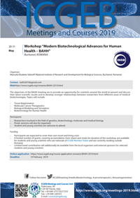 Workshop-ul ICGEB „Progresele în biotehnologii moderne pentru sănătatea umană – BAHH”, organizat în București, România, este dedicat diseminării progreselor din domeniul biotehnologiilor pentru sănătatea umană care pot îmbunătăți semnificativ calitatea vieții.